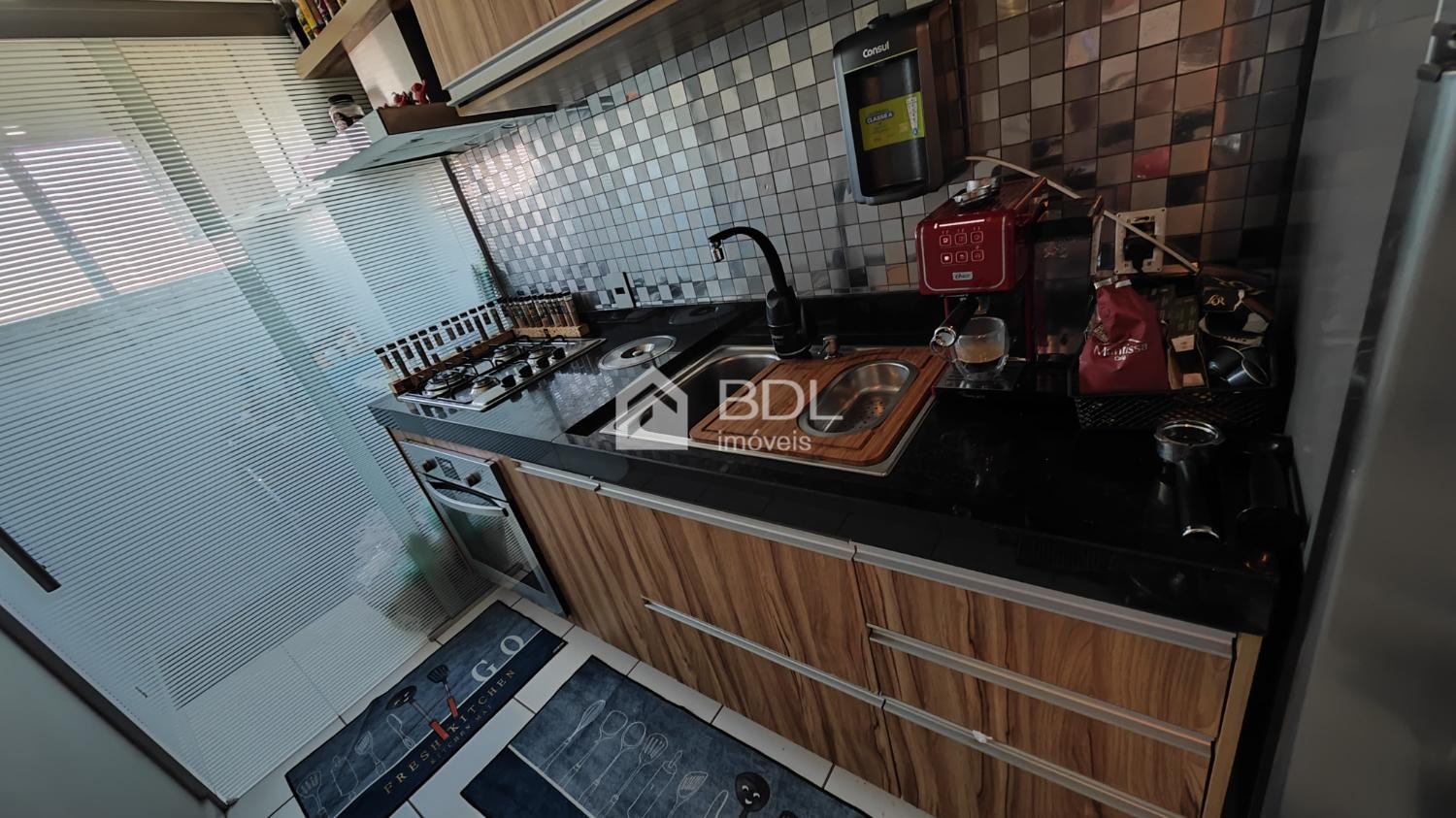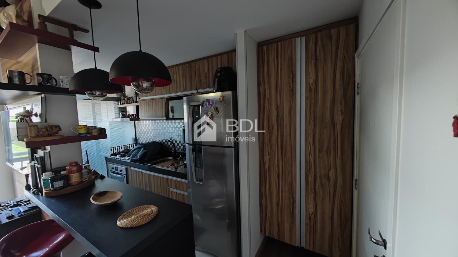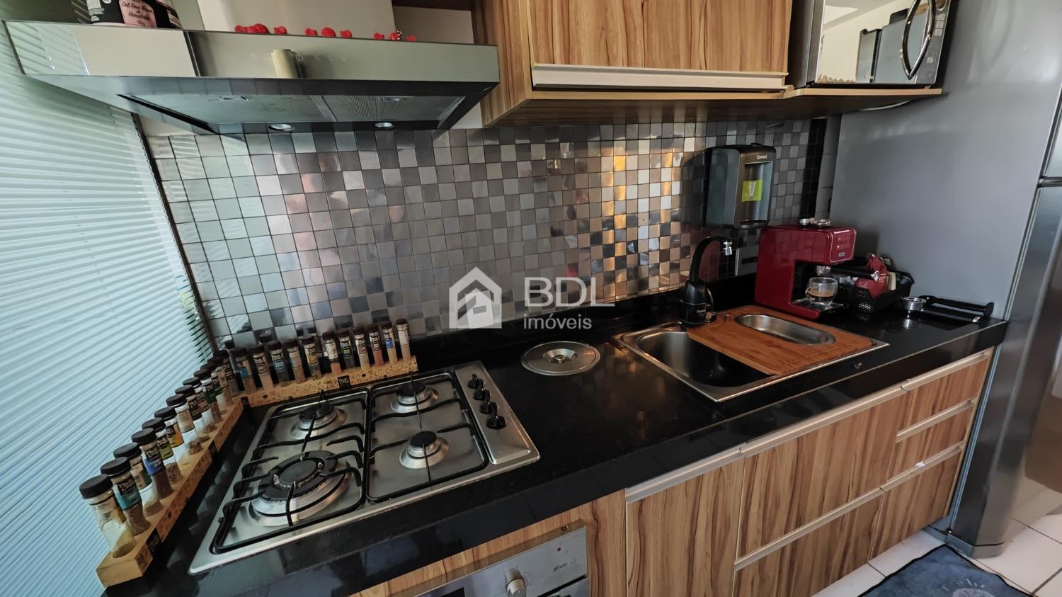 Com 2 dormitórios, cozinha planejada, cooktop, forno elétrico, coifa, banheiro social com blindex, área de serviço equipada com lava e seca, ar-condicionado na sala e nos dormitórios. Vaga de garagem coberta