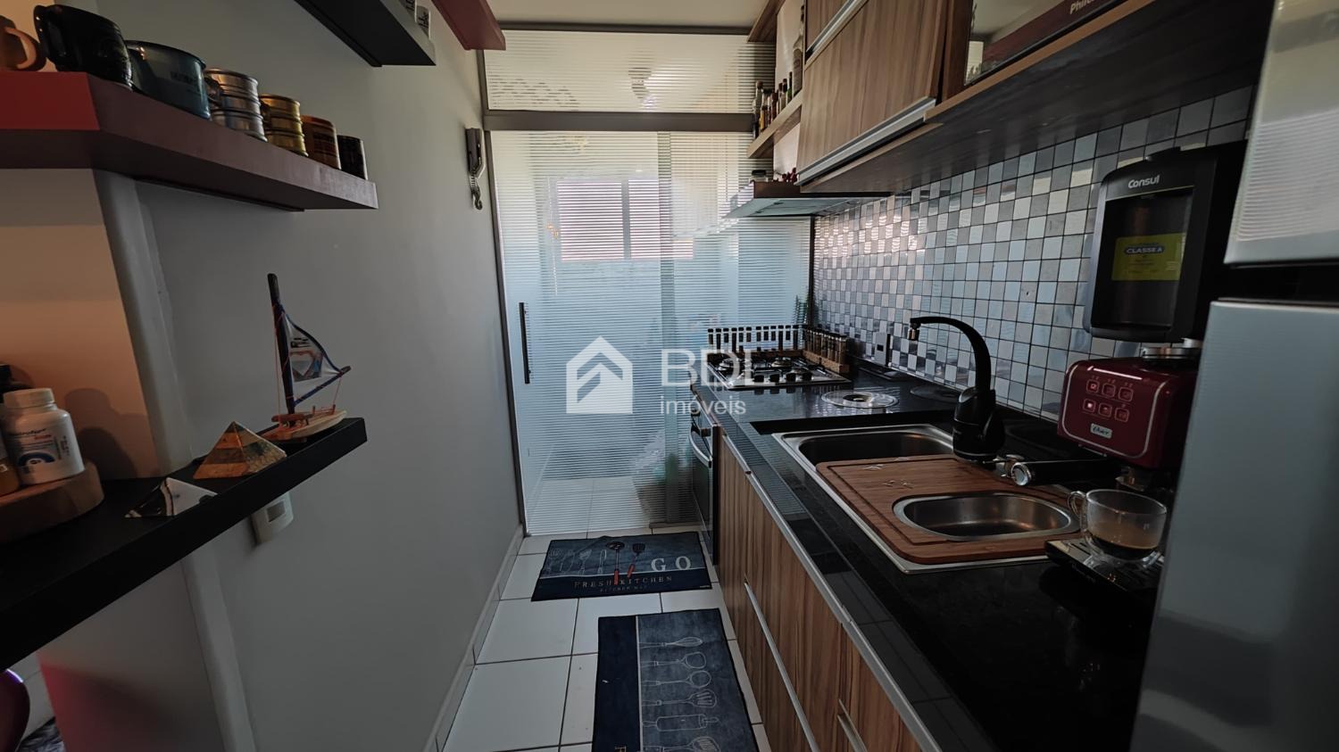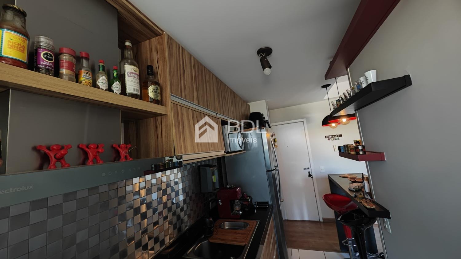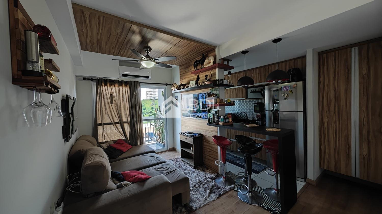 Com 2 dormitórios, cozinha planejada, cooktop, forno elétrico, coifa, banheiro social com blindex, área de serviço equipada com lava e seca, ar-condicionado na sala e nos dormitórios. Vaga de garagem coberta