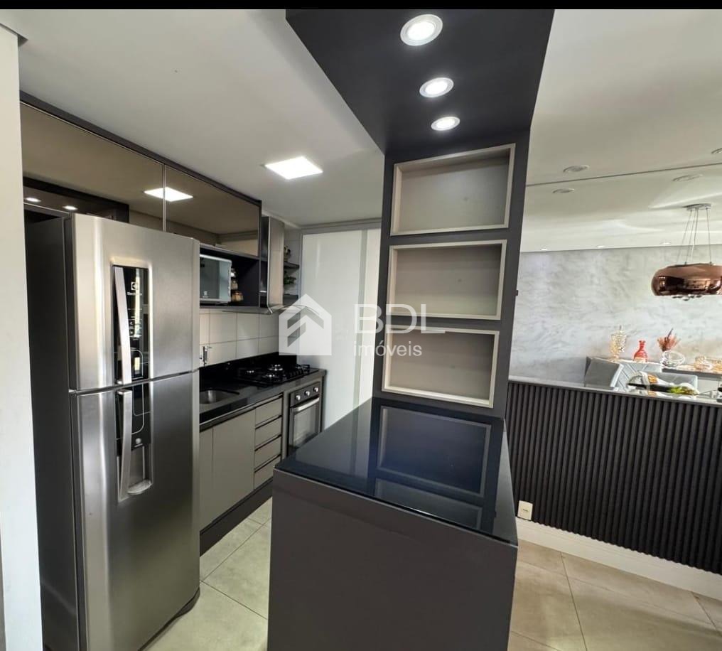 Com essa configuração, possui uma ampla sala de jantar com acabamentos em madeira ripada, espelho, barzinho com cristaleira e adega, a qual integrada a varanda Grill que possui armário, pia, fechamento em vidro e persiana, formam um ambiente lindo e aconchegante; Conta ainda com uma linda divisão para a sala de TV, com nichos e acabamentos ripados. Cozinha estilo americana integrada a sala de jantar e totalmente planejada, com cookto, coifa e forno embutido, a qual dá acesso a área garden do apto, que se encontra coberta e também com piso porcelanato. A suíte é confortável e muito bem planejada, com ótimos armários, cabeceira embutida, mesinha, espelho, arandela e ar-condicionado quente e frio; o outro dormitório também possui ótimos armários, cabeceira e mesa embutida, além de painel para TV. Os banheiros são lindos e funcionais, com box blindex, armários, cubas de sobrepor de mármore travertino e duchas Deca de 12L. O Condomínio possui área de lazer completa, portaria 24 hs e um mini mercado.
