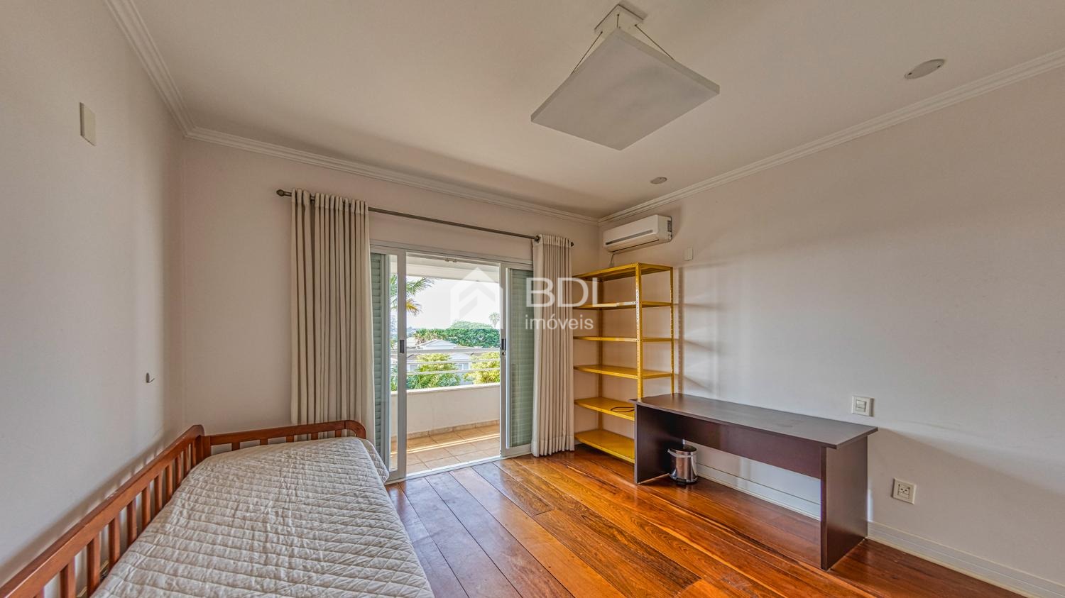 No segundo pavimento, encontre 4 dormitórios, incluindo 1 suíte master com closet e hidromassagem. Todos os dormitórios possuem ar condicionado, armários planejados e sacadas privativas, garantindo conforto e privacidade. O banheiro social é espaçoso e funcional.