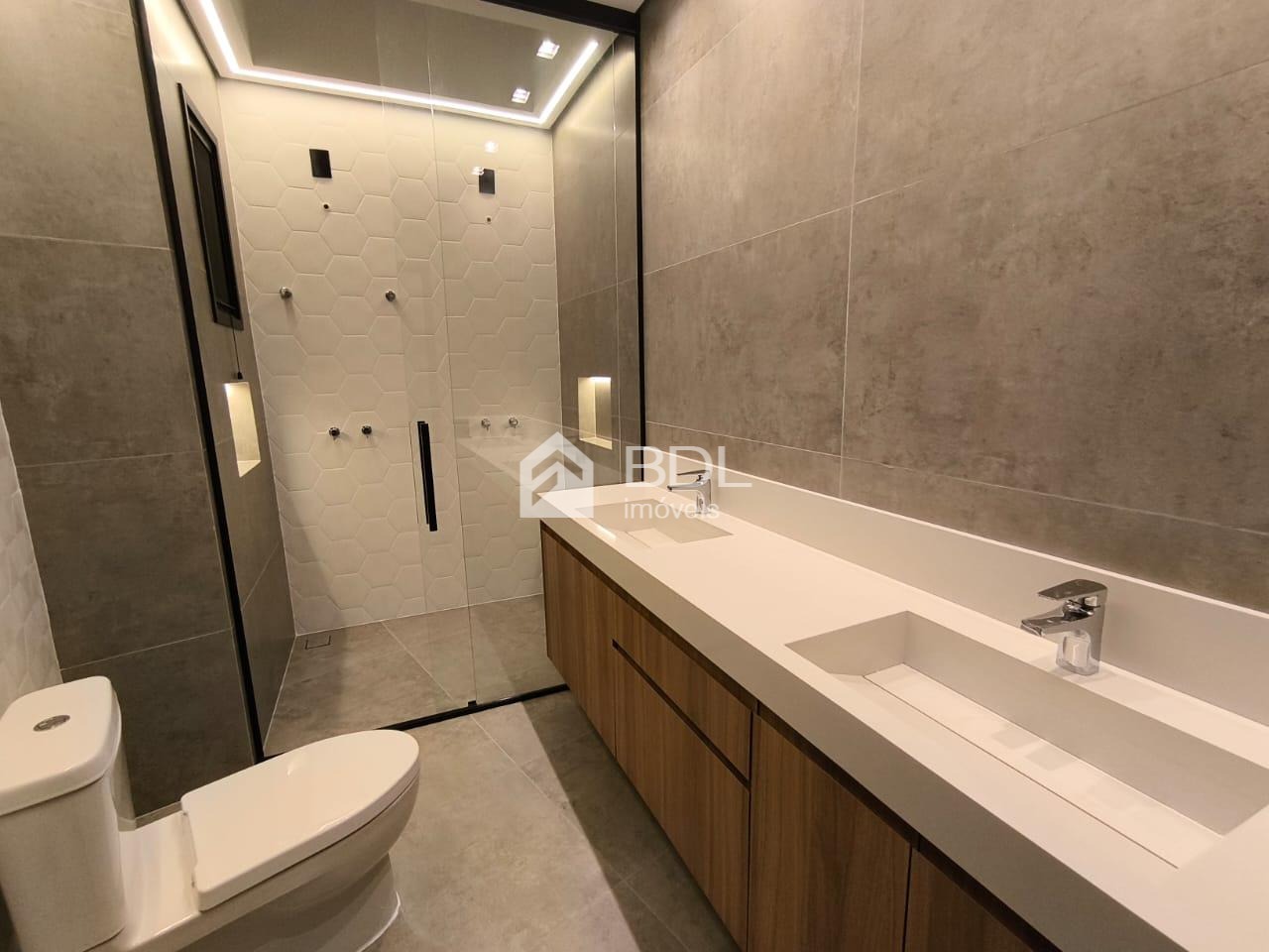 Conforto e Tecnologia: Este sobrado foi projetado para garantir o máximo de conforto e praticidade para sua família, com automação residencial, câmeras de segurança, e tomadas inteligentes. Além disso, possui infraestrutura pronta para ar-condicionado e sistema de aquecimento solar para garantir água quente, incluindo um boiler de 600 litros. Persianas automatizadas nas suítes e telas mosqueteiras para maior ventilação e conforto. Os banheiros são modernos, com cubas esculpidas e nichos, além de revestimentos sofisticados.