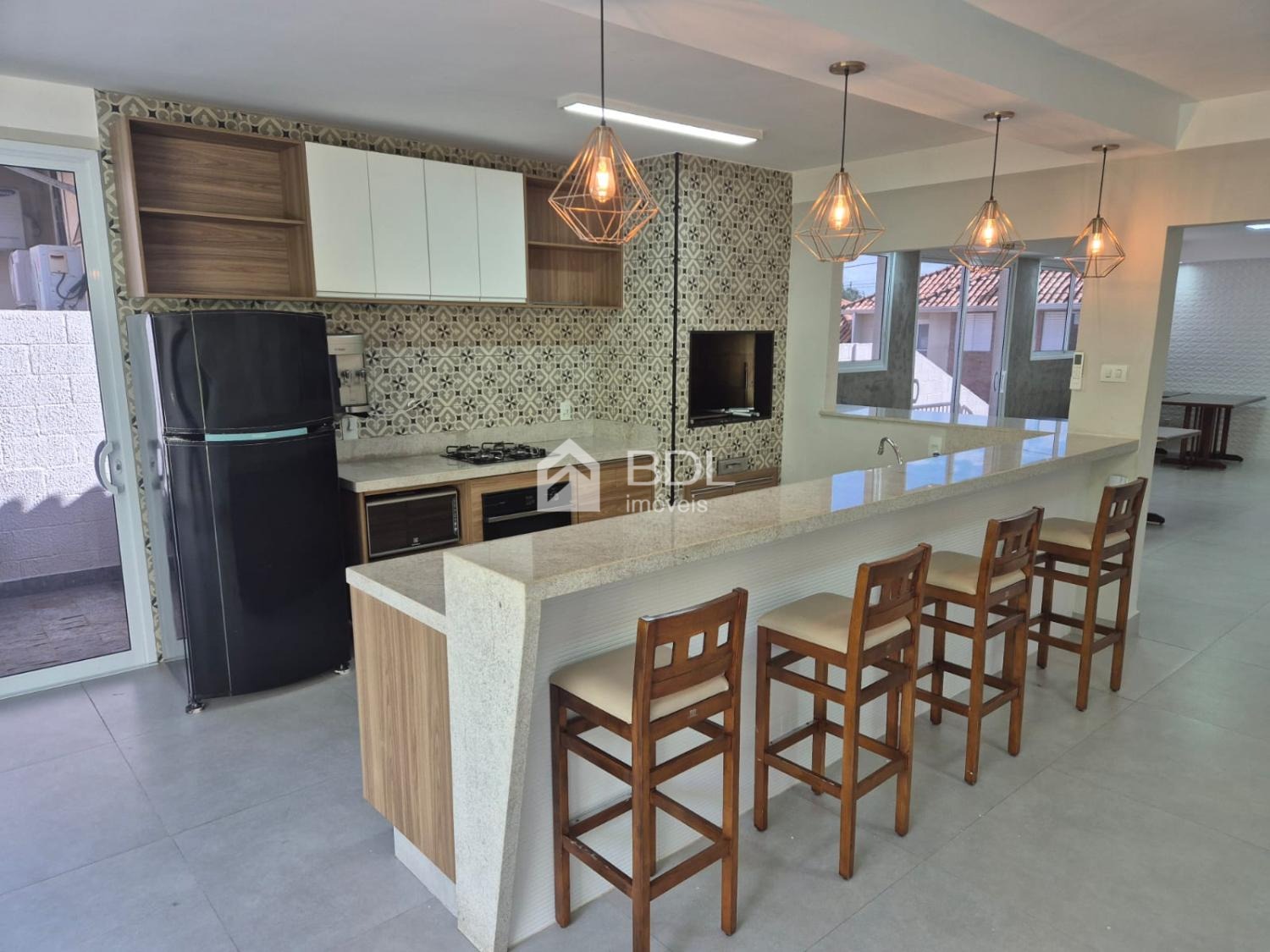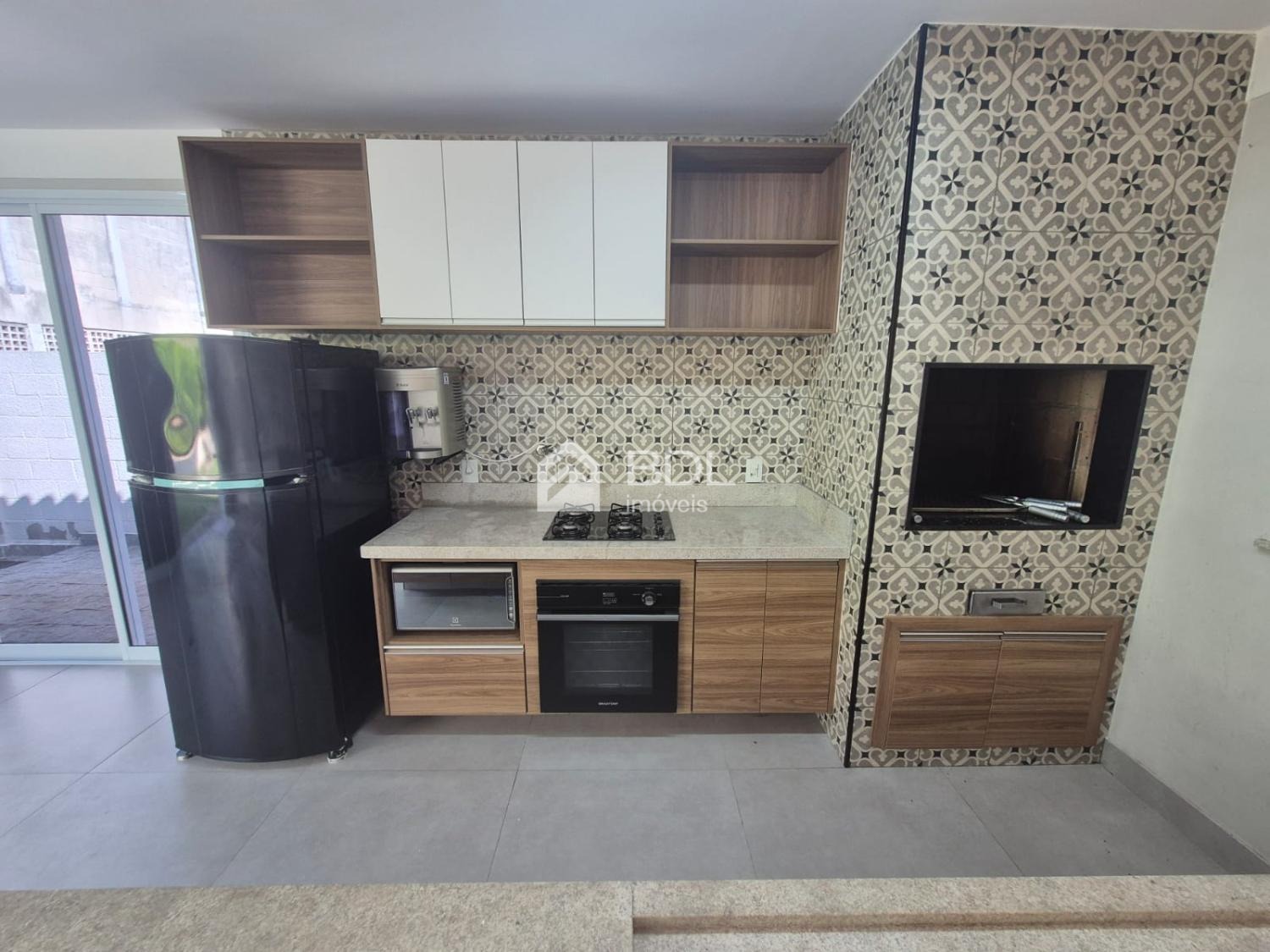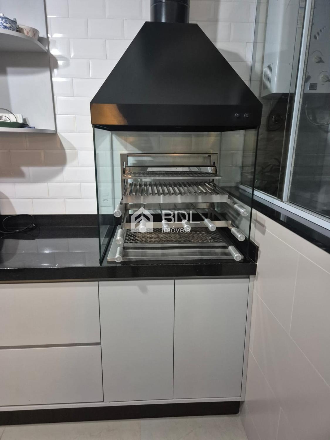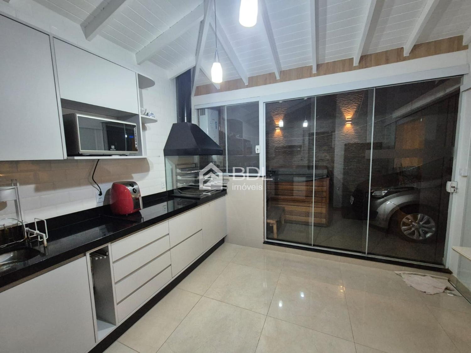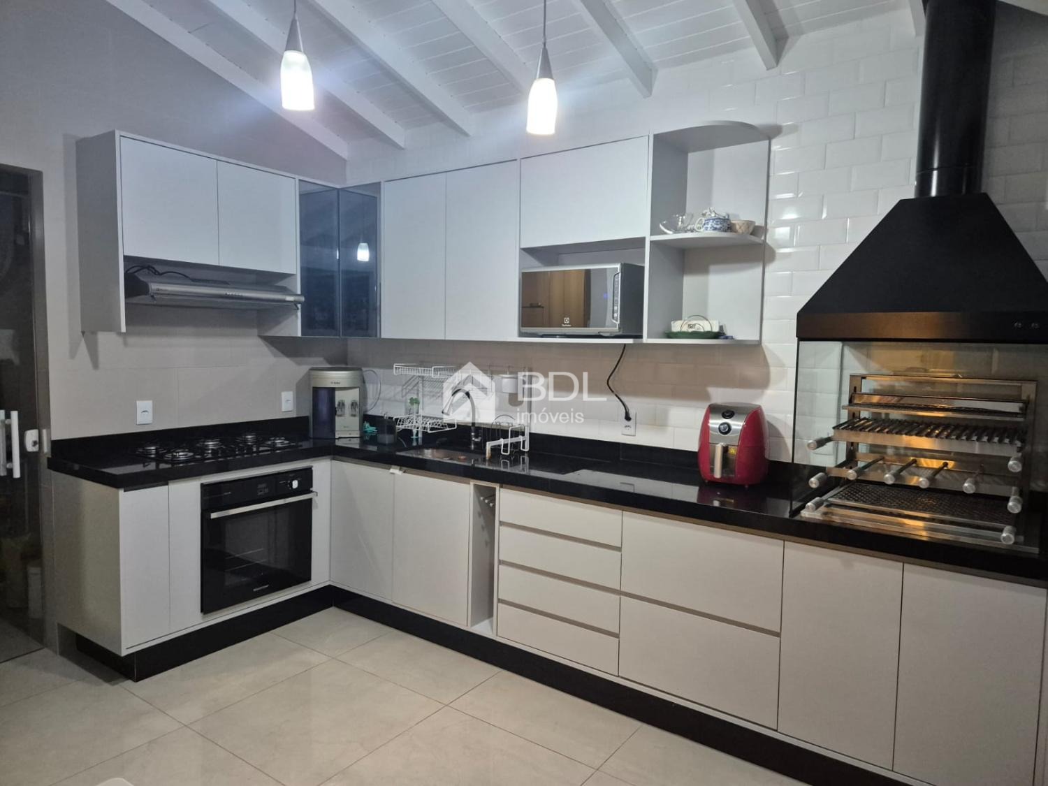 - Cozinha integrada à área gourmet com churrasqueira a carvão
