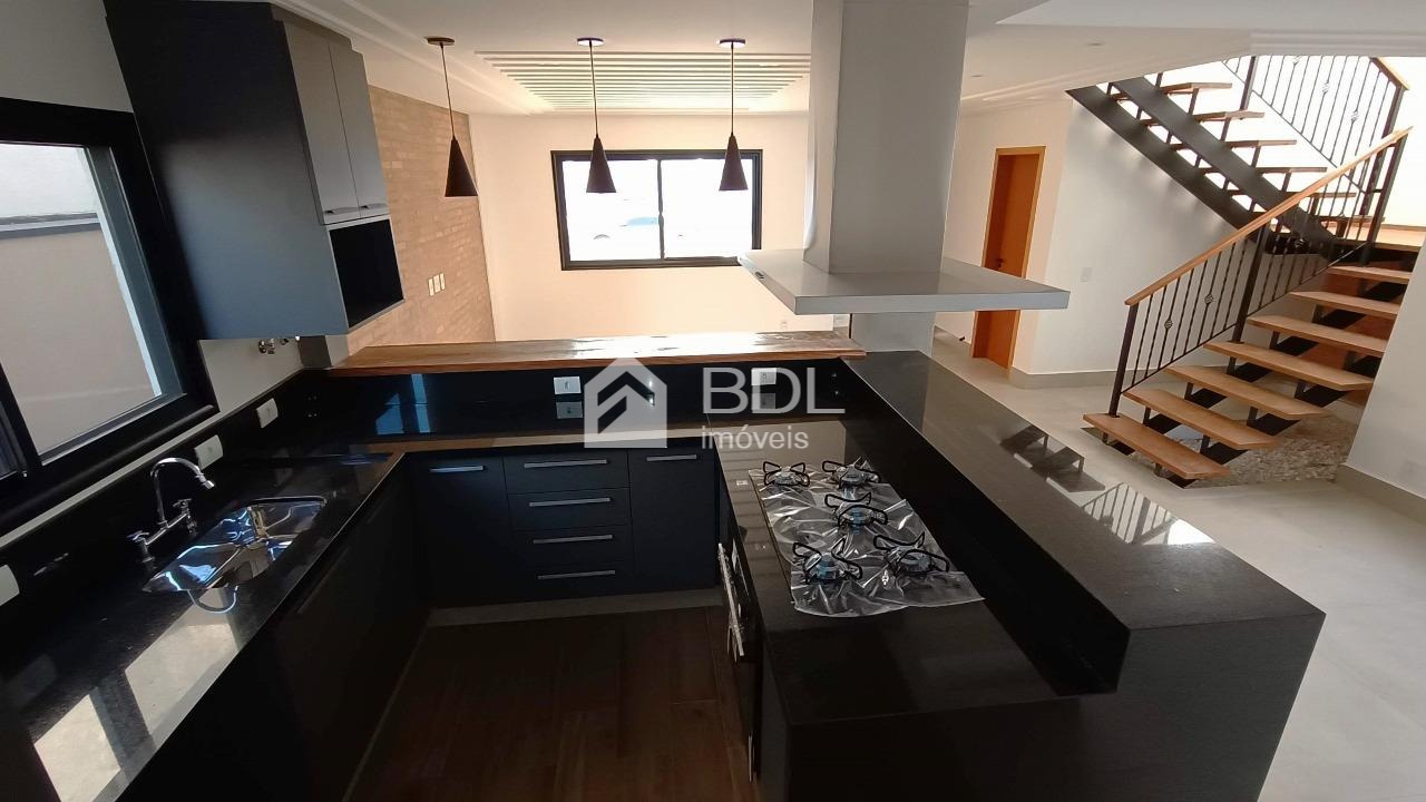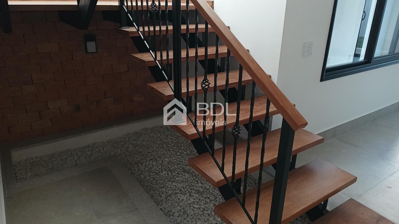 Sobrado com 03 suítes (01 suíte master com closet e móveis planejados), sala de TV e jantar integradas + escritório privativo, lavabo sofisticado com ladrilho hidráulico e bancada rústica. Cozinha planejada e equipada com cooktop, forno elétrico e coifa, área de churrasqueira com coifa, wc exclusivo, jardim de inverno e lavanderia.