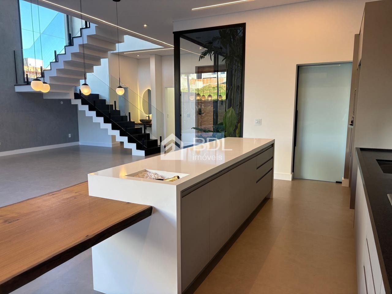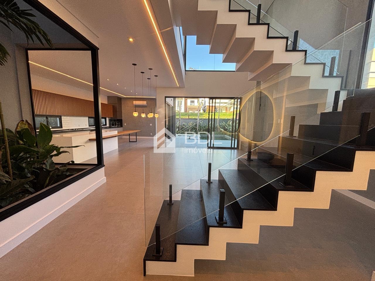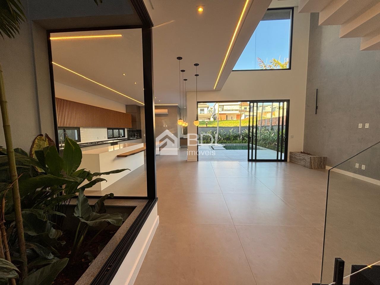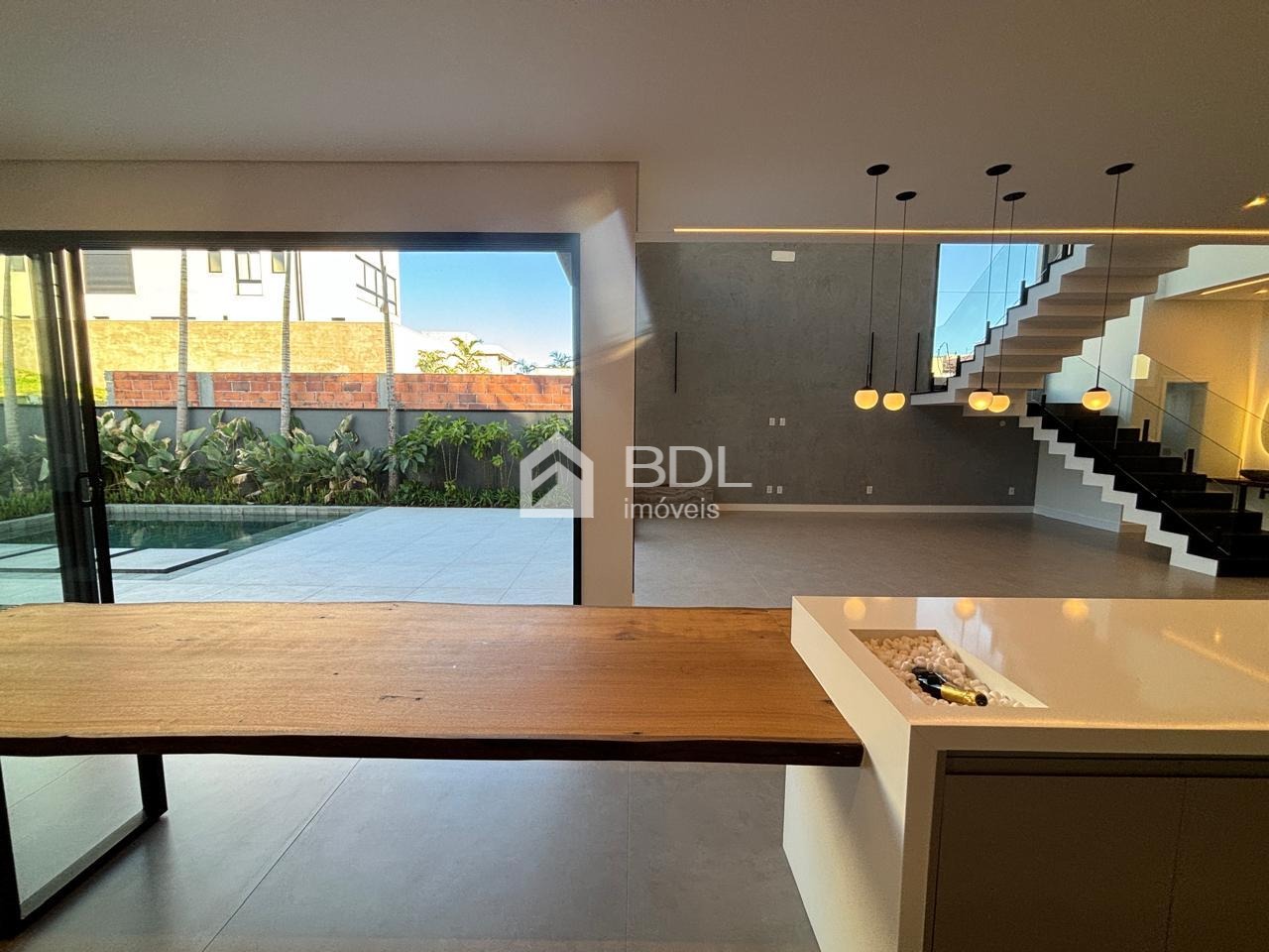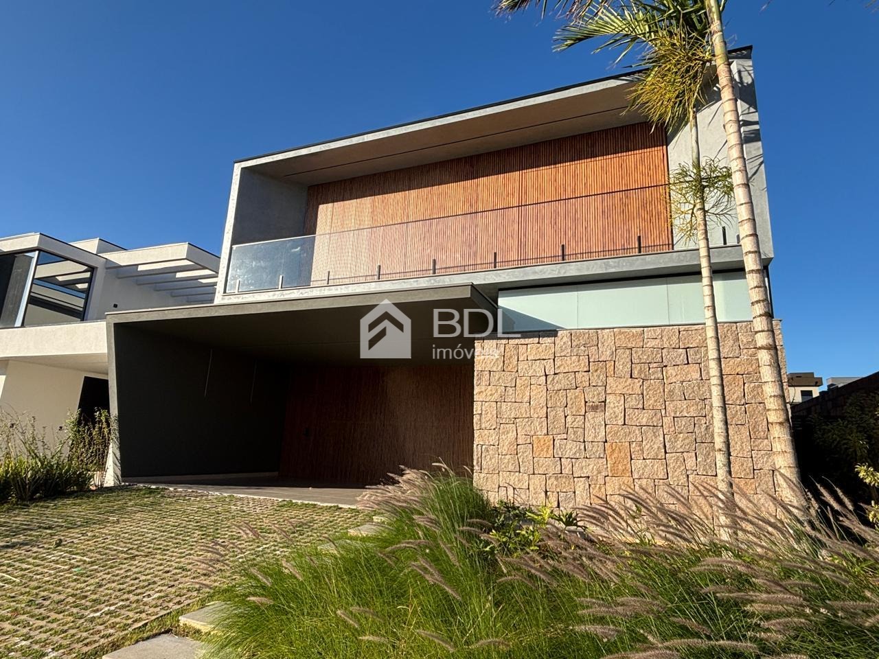 Projeto único, sala em conceito aberto com grande ilha central na cozinha e armários personalizados; 03 suítes, sendo máster com closet, ar condicionado instalado nas suítes, escritório e gourmet; Paisagismo, Piscina + prainha com pontos de hidromassagem; Sistema de geração de energia fotovoltaica; Escritório reversível (quarta suíte no térreo);Fogo de chão ao lado da piscina, jardim de inverno; Cozinha entregue equipada com eletrodomésticos.