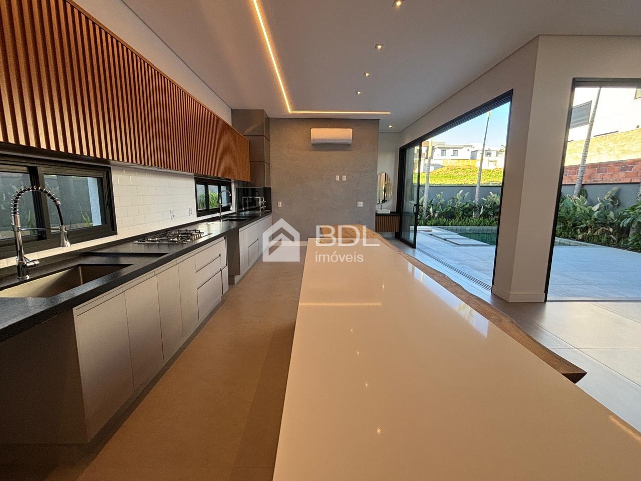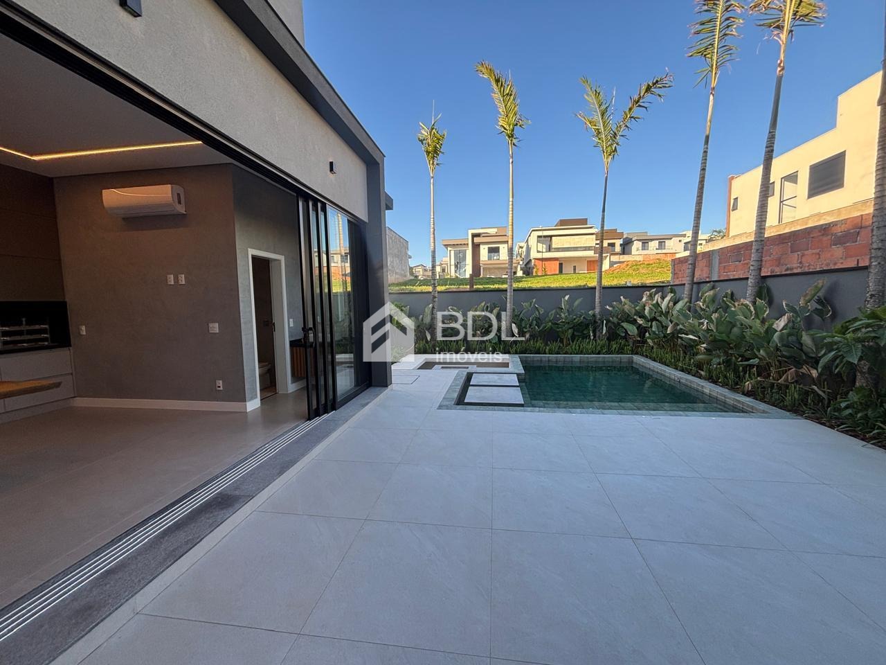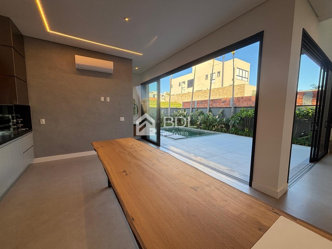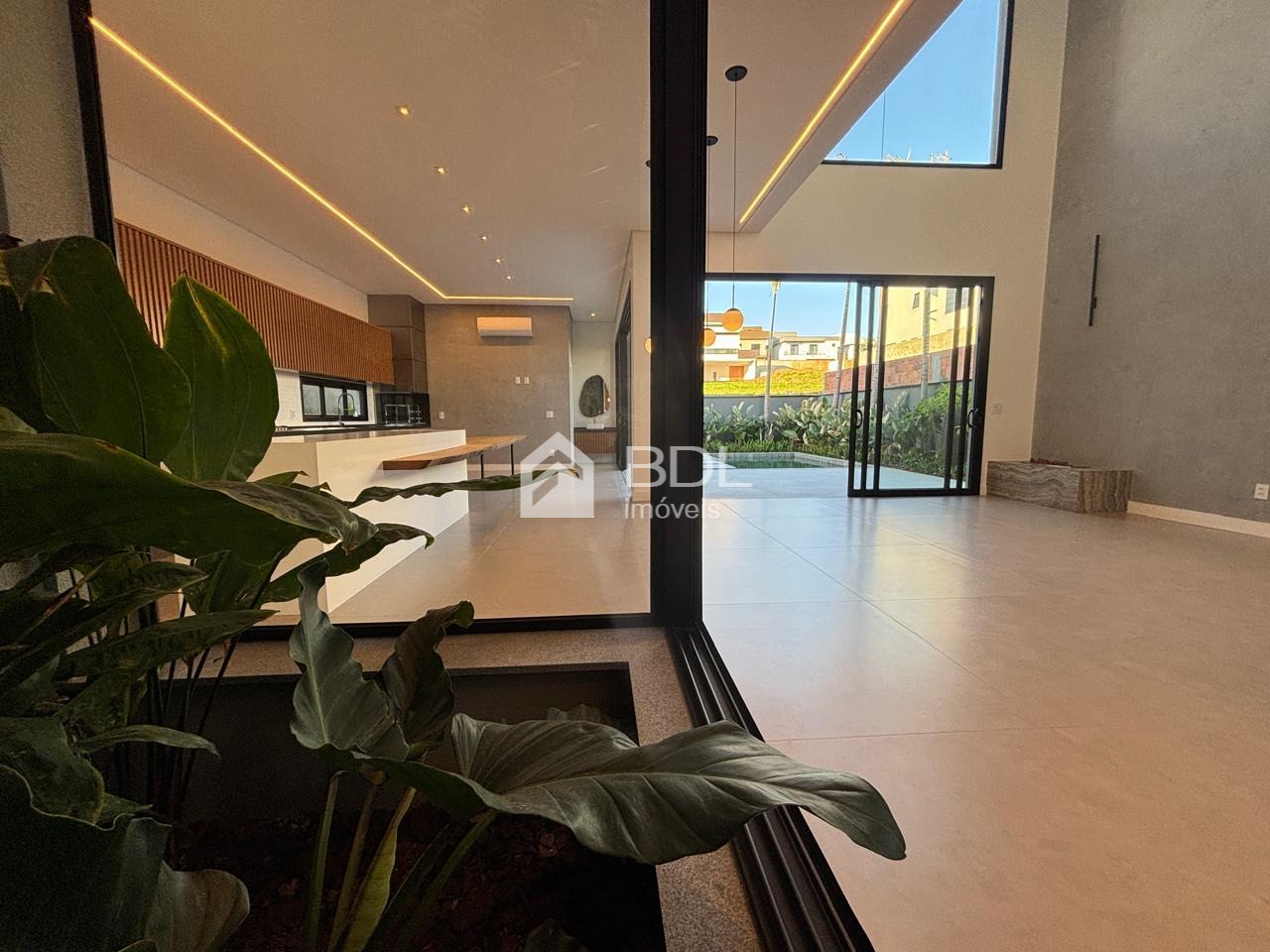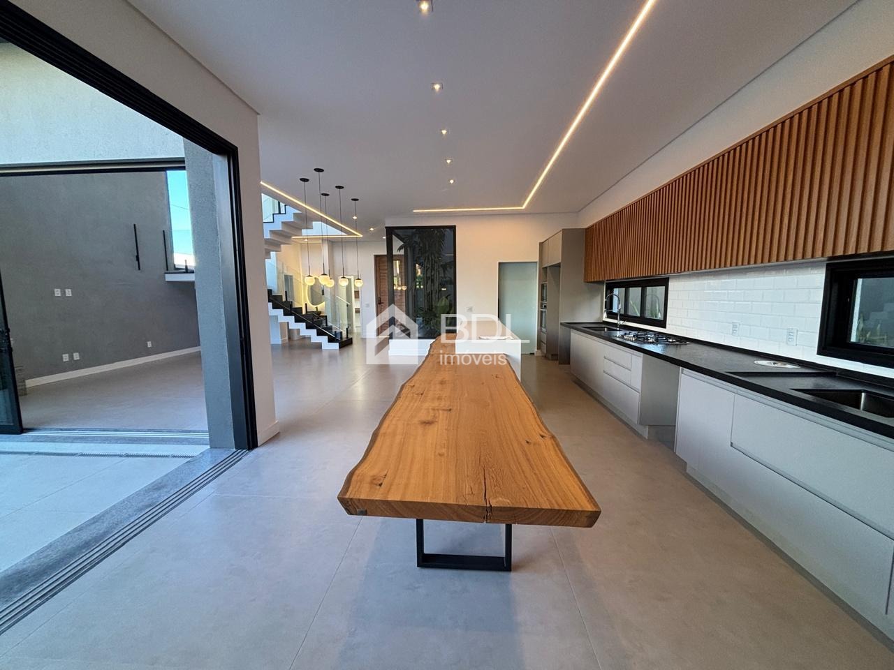 Projeto único, sala em conceito aberto com grande ilha central na cozinha e armários personalizados; 03 suítes, sendo máster com closet, ar condicionado instalado nas suítes, escritório e gourmet; Paisagismo, Piscina + prainha com pontos de hidromassagem; Sistema de geração de energia fotovoltaica; Escritório reversível (quarta suíte no térreo);Fogo de chão ao lado da piscina, jardim de inverno; Cozinha entregue equipada com eletrodomésticos.