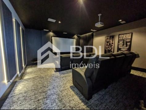 2 lavabos, escritório amplo com varanda, home cinema para 8 pessoas, mas pode acomodar 12, como era o projeto original. Os equipamentos do home cinema são todos importados, de alta qualidade de reprodução sonora e imagem, e controlados por iPad.