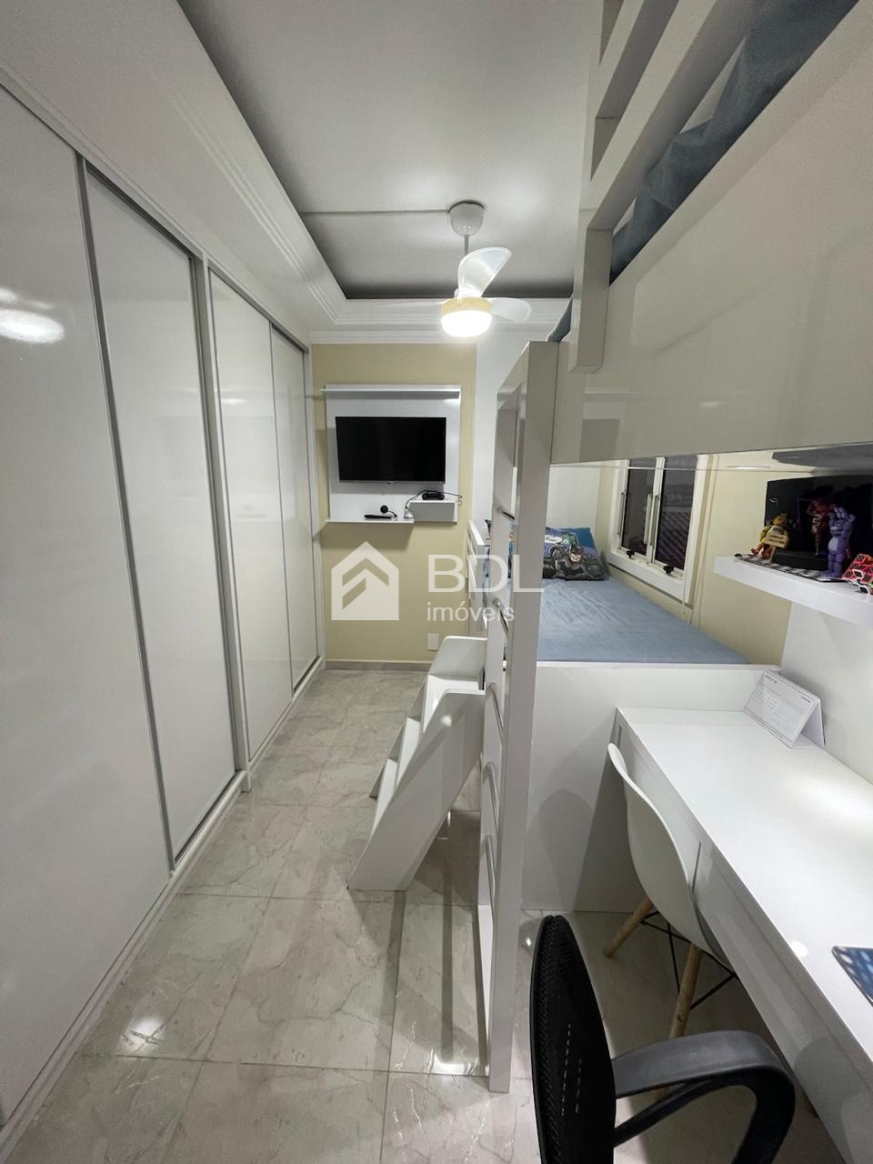 São 2 dormitórios, sendo 1 suíte, ambos completos com móveis planejados, ar-condicionado, ventiladores de teto com controle remoto e TVs smart. A sala é um convite ao conforto, com painel planejado, TV de 50”, integração com assistente virtual e um sofá retrátil de excelente qualidade - perfeita para relaxar ou receber visitas com estilo.