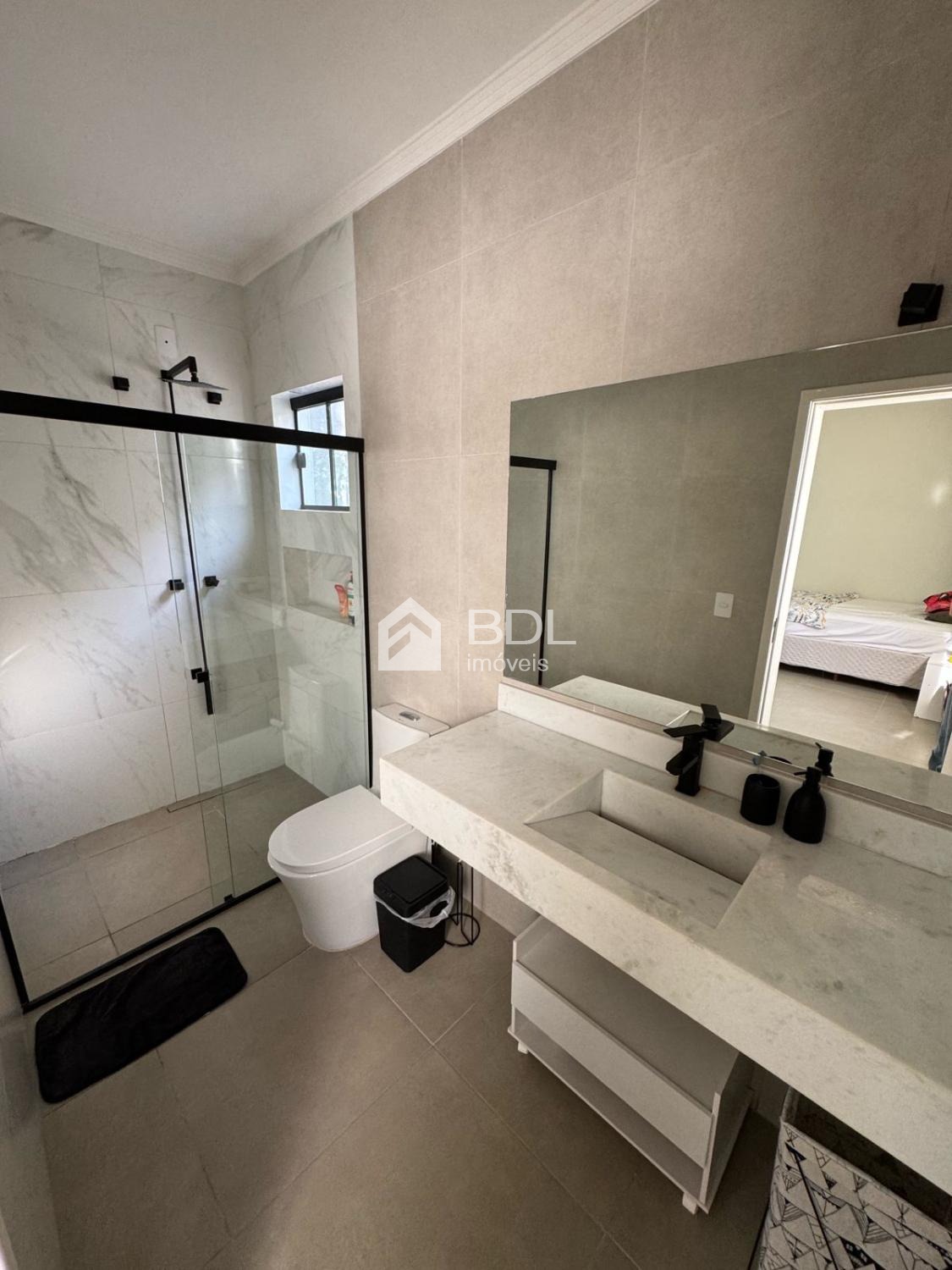 Casa térrea com 4 dormitórios, sendo 3 suítes, 2 suítes master, ambas impressionantes: Suíte master 1: ante-sala/closet, chuveiro duplo, box de vidro até o teto, pia dupla esculpida, espelho LED. Suíte master 2: banheira de hidromassagem, pia dupla, box moderno. Banheiros com acabamento impecável: pias esculpidas, espelhos de parede inteira e vasos monobloco. Sala de estar e jantar integradas à área gourmet, cozinha equipada com torneiras modernas, dispensa, lavanderia independente.